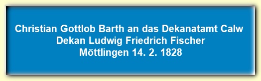 Christian Gottlob Barth an das Dekanatamt Calw (Dekan Ludwig Friedrich